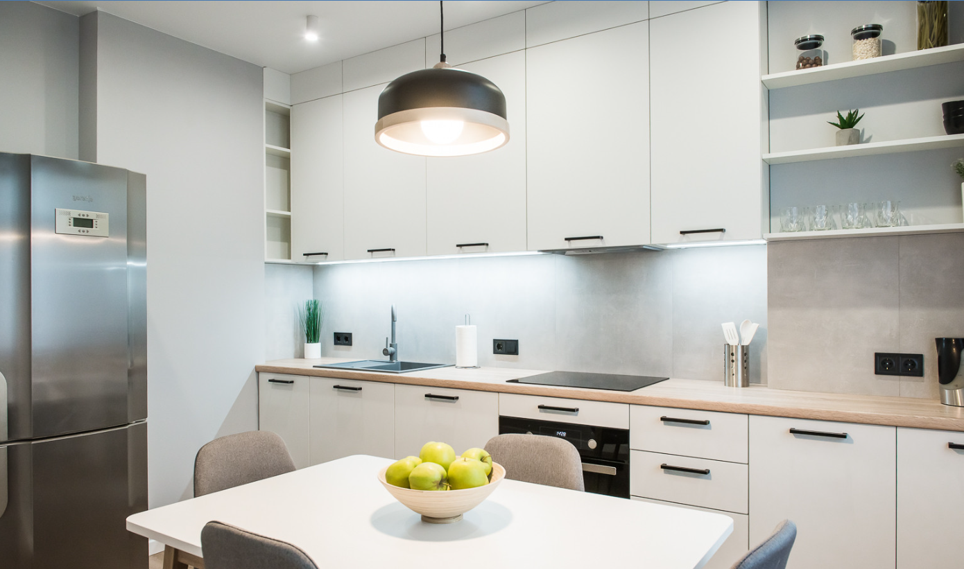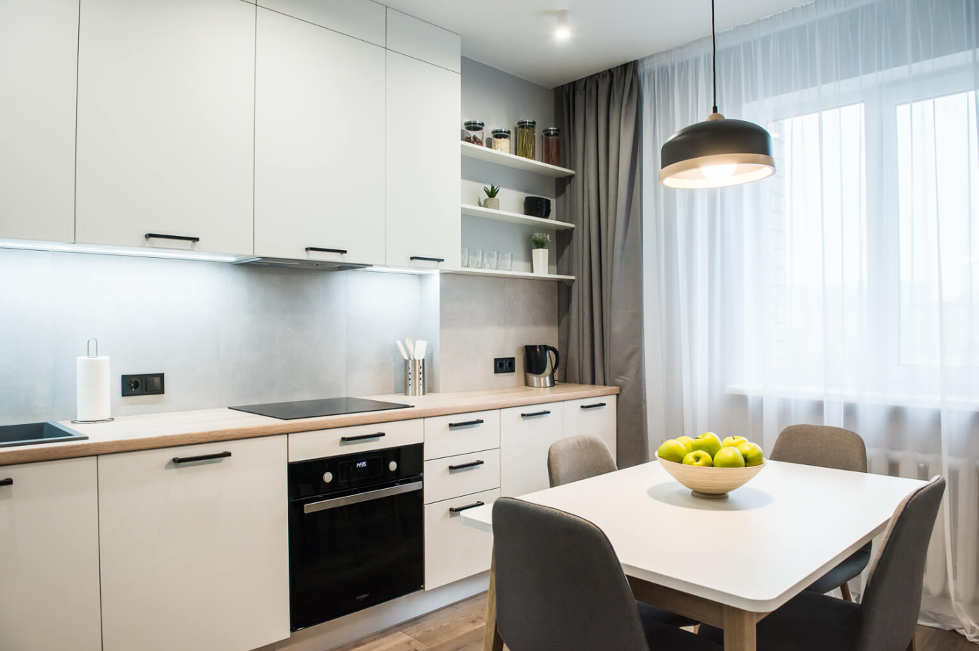 - Встановлення нової побутової техніки, виготовлення і монтаж меблів (кухні, шафів-купе, дзеркал), комплектація квартири ліжками, диванами, кріслами, столами та інших декоративними елементами;